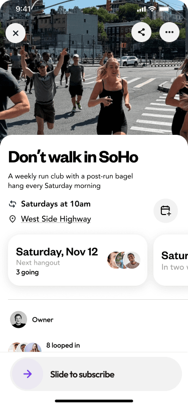 One-off events are fleeting. Recurring loops turn strangers into regulars — and regulars into real friends.
